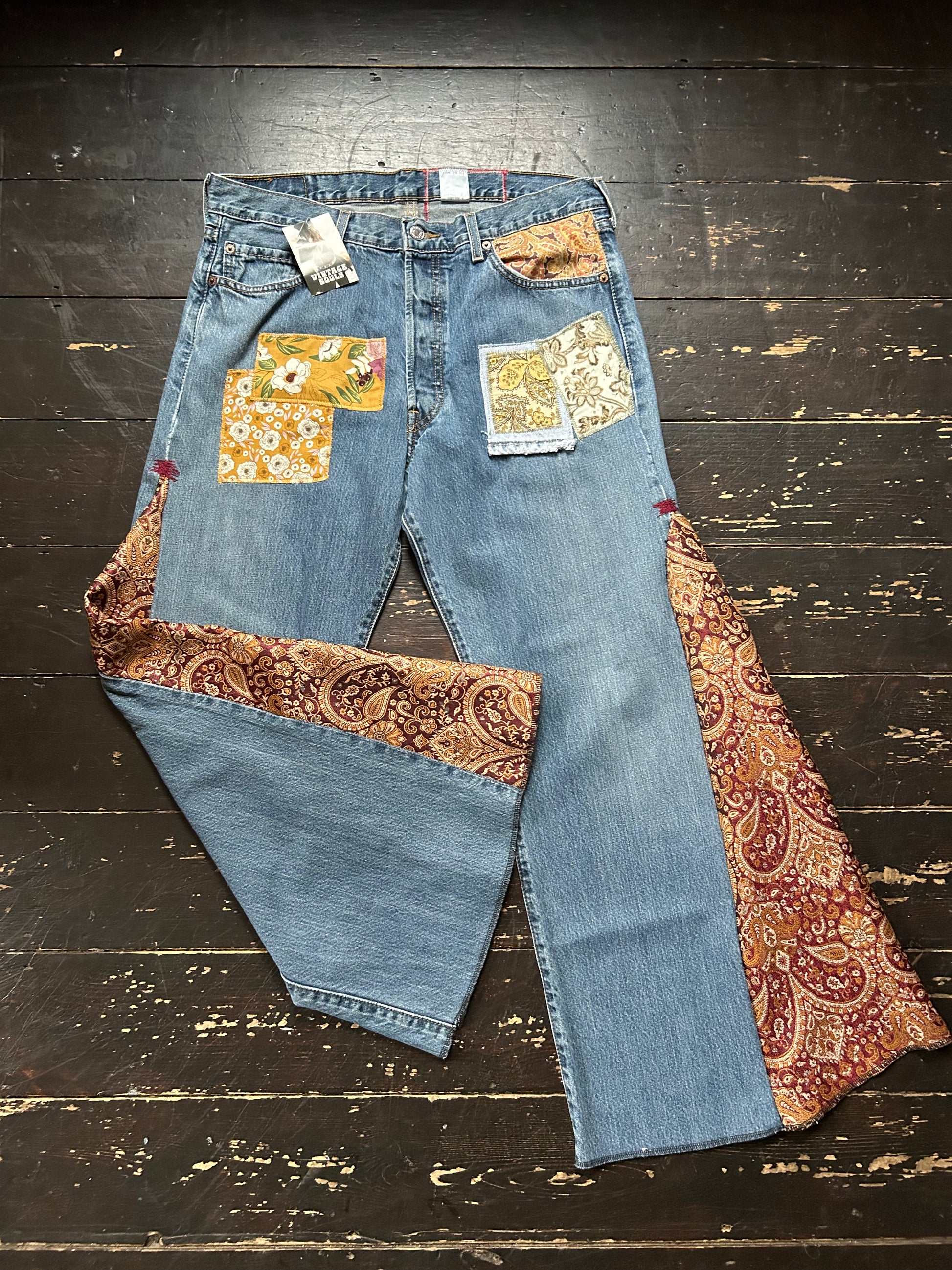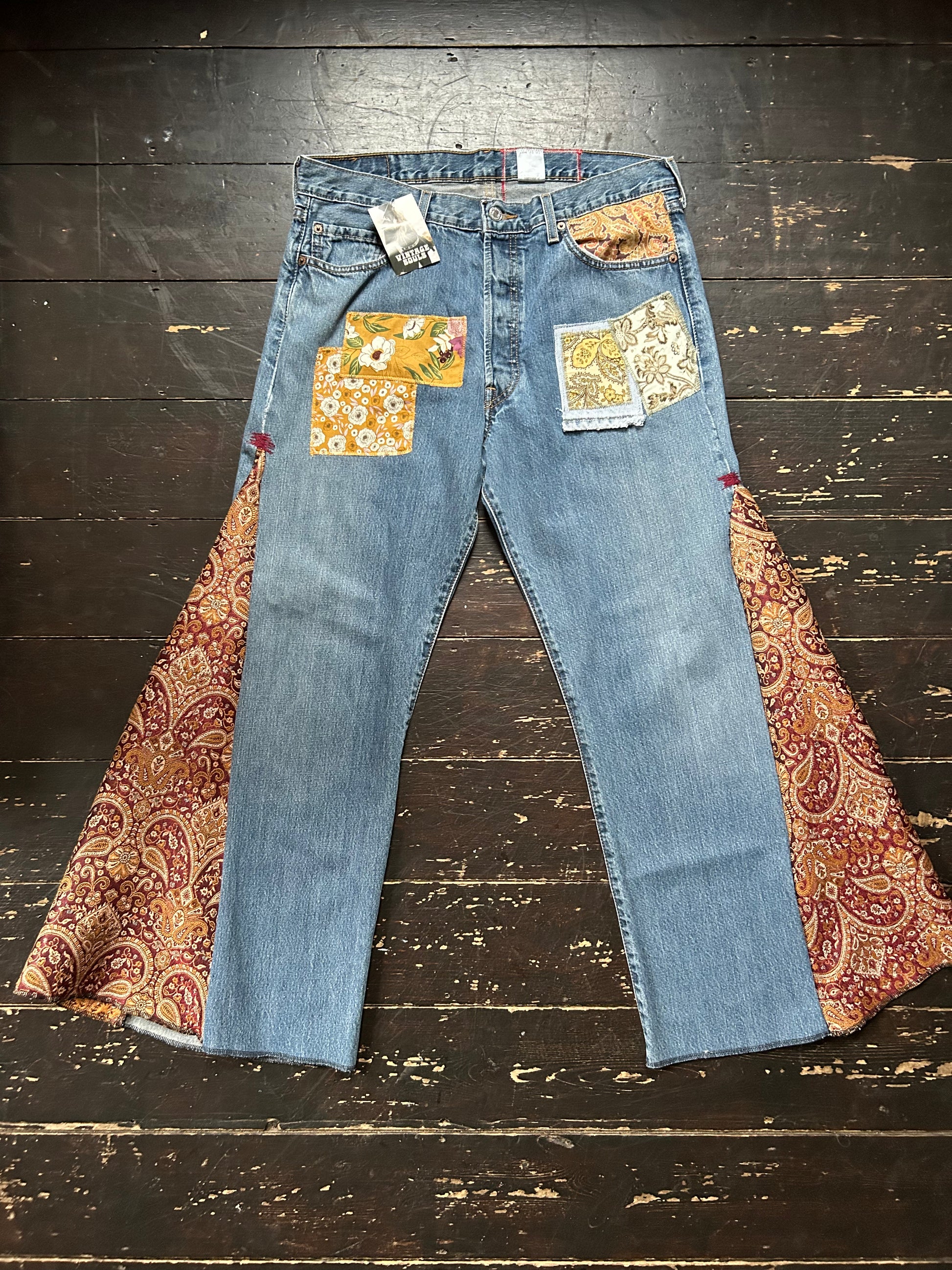 PAISLEY GOLD VINTAGE REWORKED LEVI'S 501's JEANS LONG LENGTH