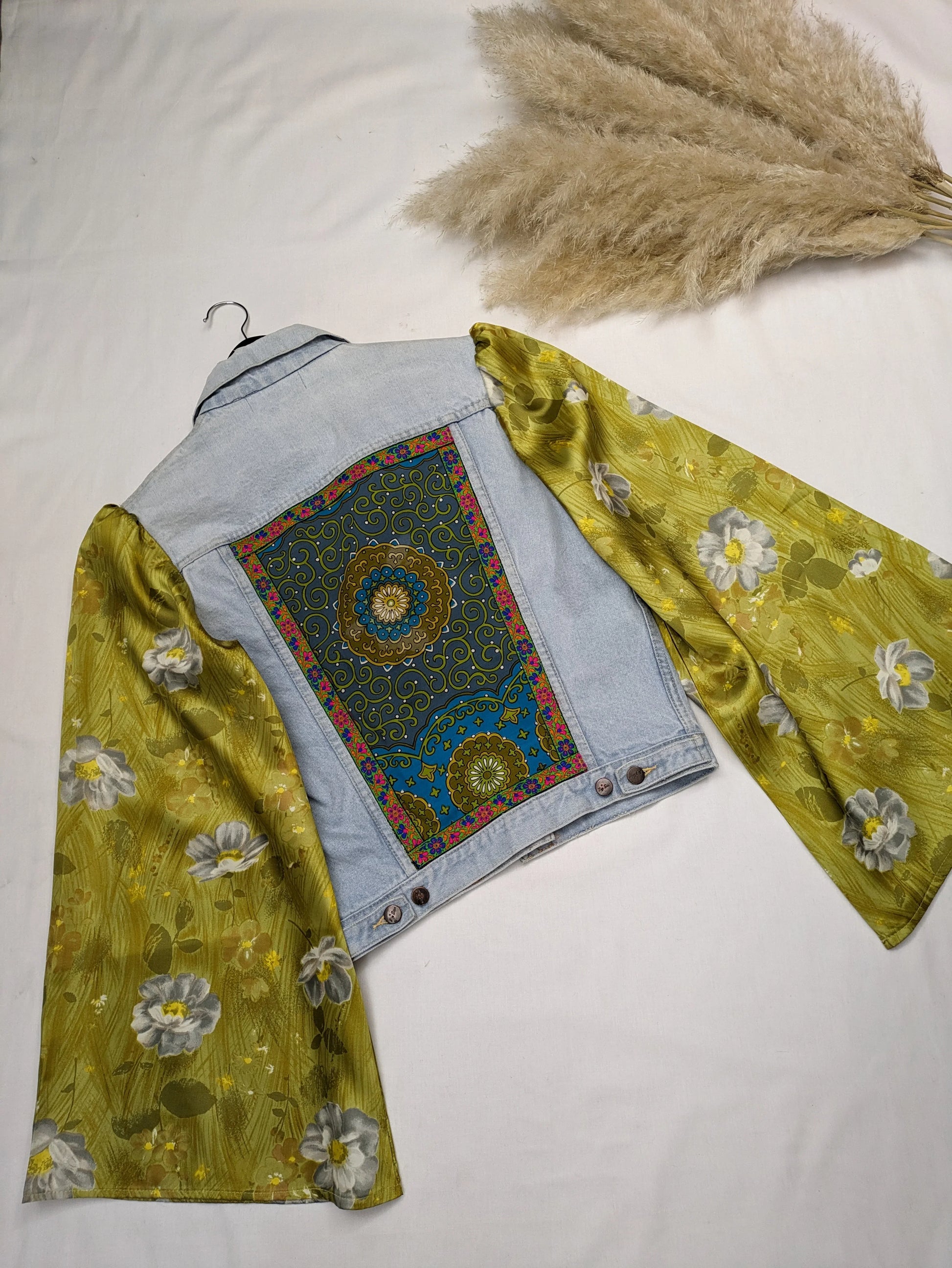 ✯ Our jackets have been reworked with textiles, embellishments and adding flared sleeves made from sari silk fabrics ✯