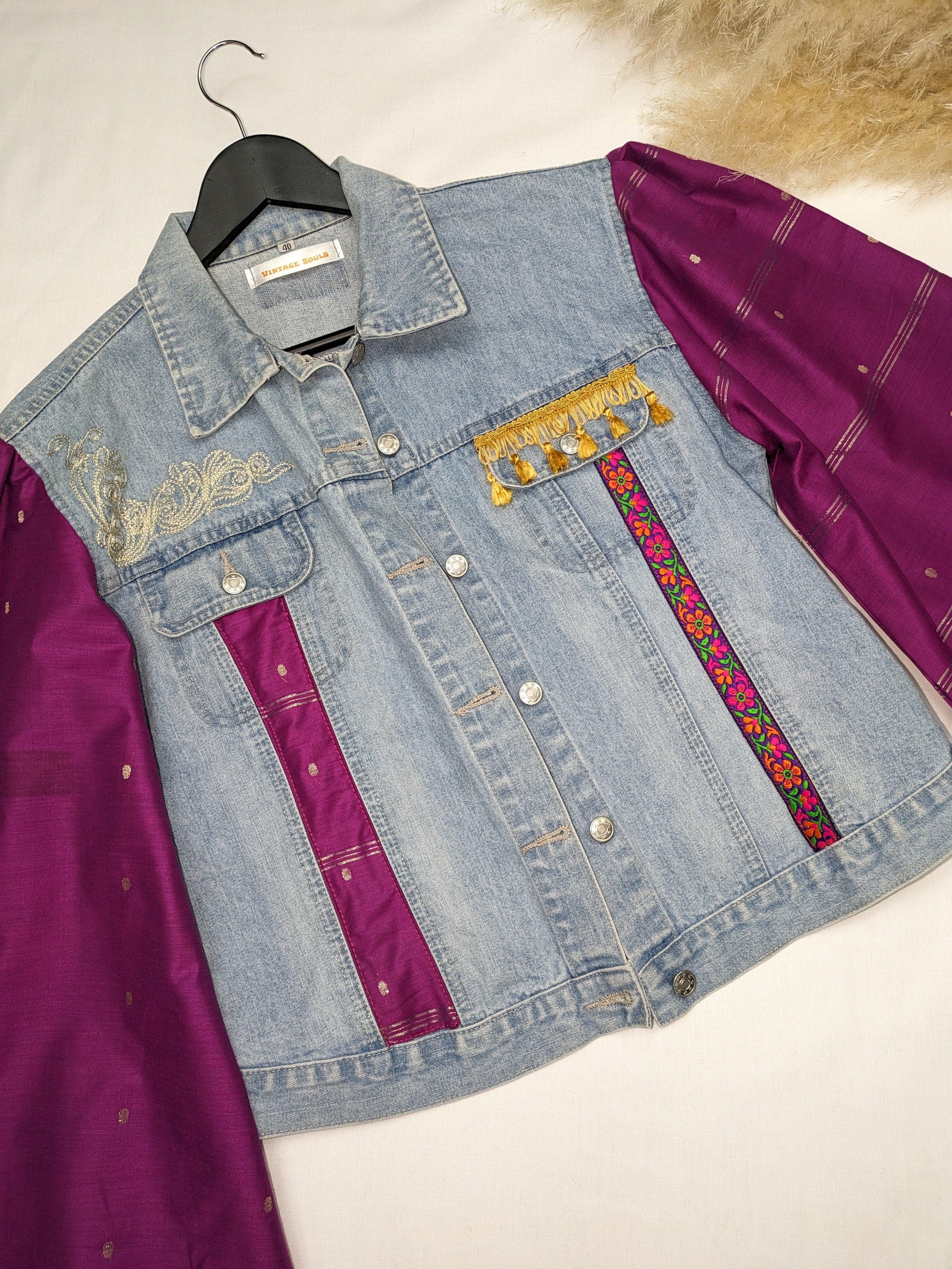 REWORKED PURPLE TASSEL DENIM JACKET M/L